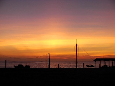 靜靜地,和心愛的另一半比肩坐在沙灘上。歸航的船隻、遠近交織的引擎聲、鄰近島嶼逐漸點上的燈亮、在海平面間轉換成的深藍天光……無聲勝有聲的浪漫,在那短暫的光影流轉的美麗的片刻之間,記憶成不退色的永恆。(攝影/許展彰)